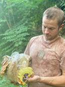 This is a 50/50 blend of our Lion’s Mane and Turkey Tail tinctures. We grow all of the Lion’s Mane and Turkey Tail that goes into our extracts here on our certified organic mushroom farm in Upstate New York. The vast majority of mushroom supplements on the market are made with mushrooms grown overseas and we’re proud to be one of the only companies doing the whole process, from spore to sale, right here in the USA. We make our tinctures using a dual extraction method in order to provide the full spectrum of benefits available from our mushrooms. We use separate batches of mushrooms for each extraction method and at the highest possible ratio per species in order to make the most potent tinctures possible. You can see the difference in our tinctures based on the darkness in color and viscosity. When you buy tinctures from Hodgins Harvest, you’re supporting a small business that is run by people passionate about using functional mushrooms as part of our daily lives.