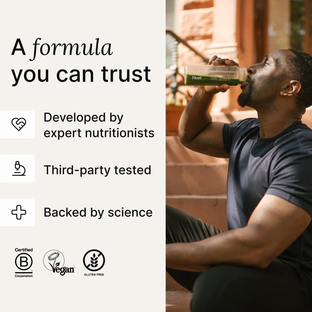 - YOUR NEW FAVORITE ROUTINE: Drink Huel Daily Greens once a day, first thing in the morning *with* your breakfast, not instead of it! Daily Greens fits seamlessly into your daily morning routine