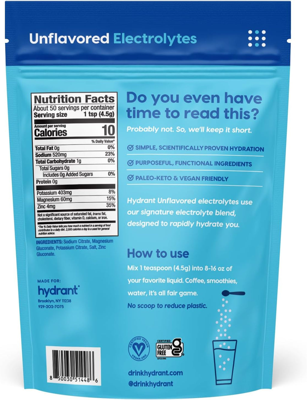 - Convenient to Use: Simply stir 1 tsp of Hydrant electrolyte powder packet with 16 oz of cold water and enjoy. Drink this anywhere for immediate dehydration relief.