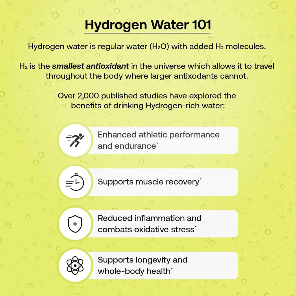 - Hydrogen Water for Antioxidant and Cellular Health: Packed with H2 hydrogen, the smallest antioxidant, this dry water hydration powder penetrates deep into cells to combat oxidative stress, reduce inflammation, and boost your immune system. Perfect for athletes and those seeking needed hydration support with hydrogen water bottle, it promotes overall well-being and longevity.