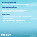 Active ingredient (in each caplet) Loperamide HCl 2 mg Purpose Anti-diarrheal Inactive ingredients Anhydrous lactose, carnauba wax, hypromellose, magnesium stearate, microcrystalline cellulose, polyethylene glycol, pregelatinized starch