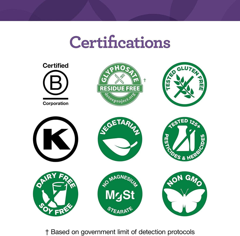 - Put To The Test: Non-GMO; Certified B Corp; Certified Kosher; Tested for over 125 chemical substances; Free of gluten, dairy and soy
