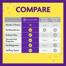 - 31 Probiotic Strains, a blend of 31 unique gut probiotic strains that thrive at human body temperature, including Lactobacillus reuteri and acidophilus, Bifidobacterium, and soil-based spores like Bacillus subtilis DE111 and Bacillus coagulans