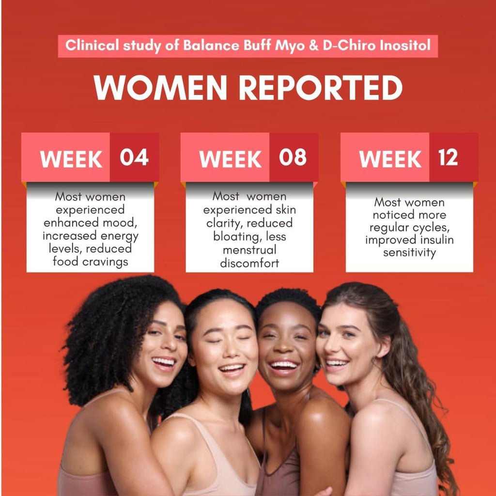 - All-in-One Inositol Powder: Balance Buff's Myo & D-Chiro Inositol Supplement For Women combines two powerful forms of inositol myo-inositol and d-chiro inositol to help support hormonal balance for women. Each serving contains folate ,Vitamin D and Cranberry powder. This blend is ideal for women looking to improve cycle support and overall well-being.