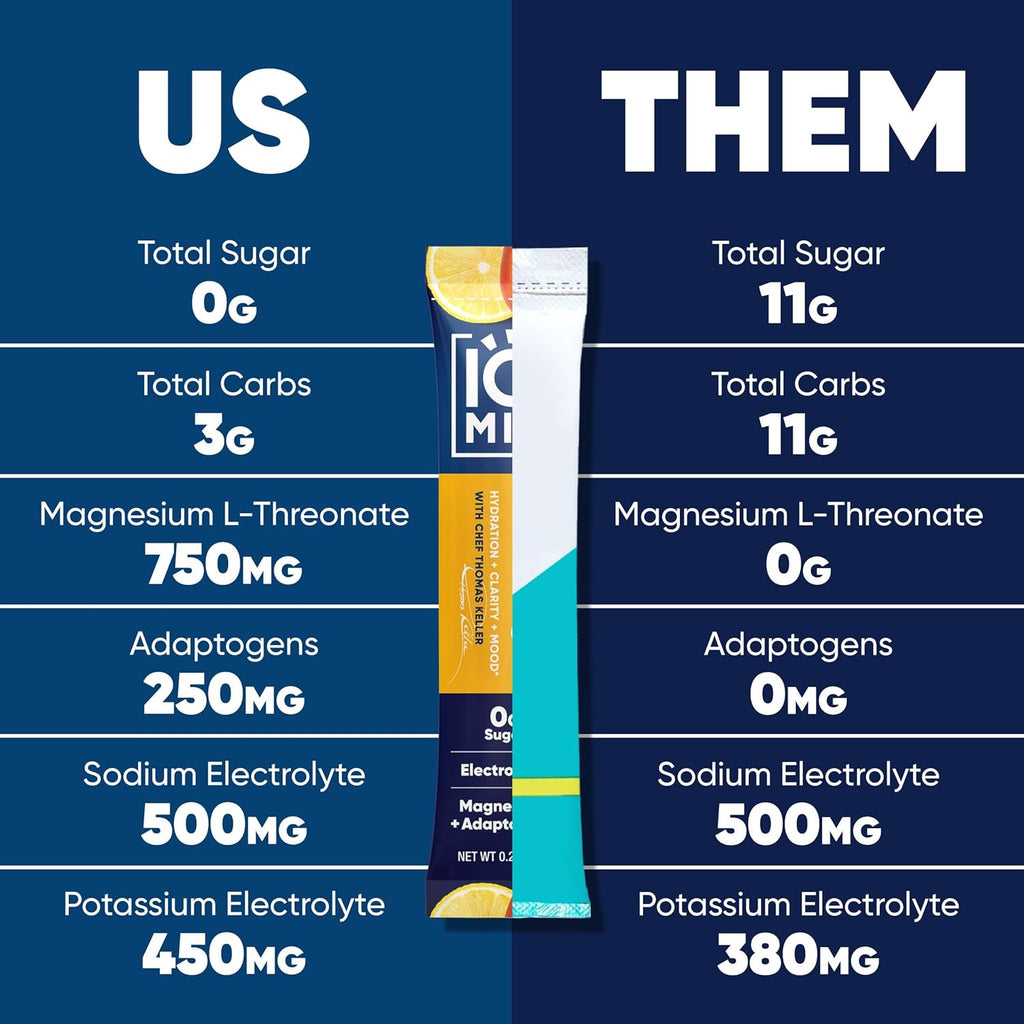 - ULTRA-HIGH STANDARDS. ULTRA-LOW SUGAR: With a science-backed formula, our brain stimulating rehydration mix is packed with nutrients to support your busy lifestyle. Each electrolyte drink is packed with Lion's Mane mushroom powder, to combat brain fog and act as a focus aid, and Magtein Magnesium L-Threonate, to support mental clarity and mood. IQMIX combines your electrolyte, magnesium, brain support, mood support, sodium, and potassium to an all-in-one supplement