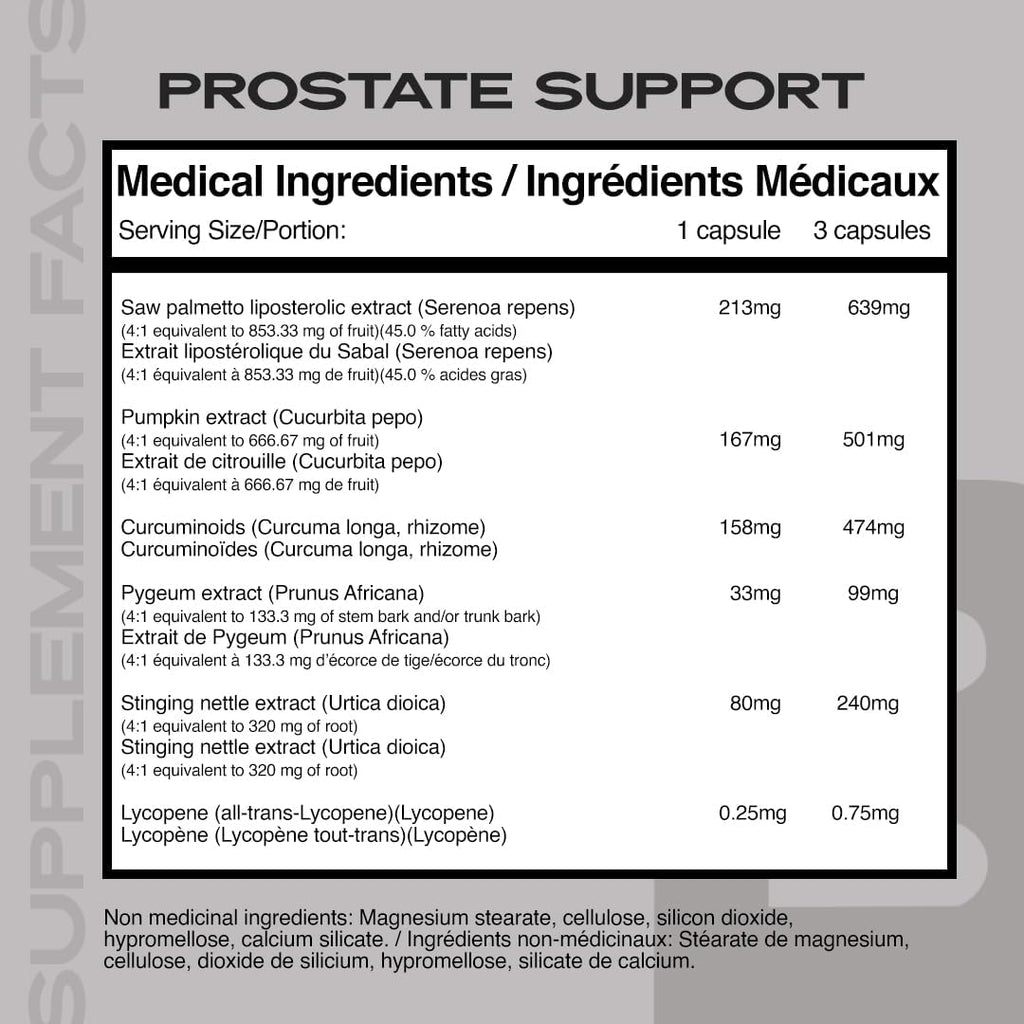 - Top Quality Ingredients for Prostate Health - Our prostate health supplements for men contains Saw palmetto liposterolic extract, Pumpkin extract, Curcuminoids, Pygeum extract, Stinging nettle & Lycopene.