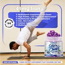 - Iron + Vitamin C - Combining 45mg of elemental Iron & 100mg of Vitamin C for max absorption & rapid results and without the metallic taste of iron pills,Well-tolerated and bioavailable form of Iron. Vitamin C helps support Iron Absorption.