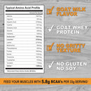 - ALL NATURAL GOAT WHEY PROTEIN: Sourced from pasture-raised, rBGH/rBST Hormone Free goats from small American dairy farms, our non-denatured goat whey is rich in essential amino acids, providing clean protein for your fitness journey.
