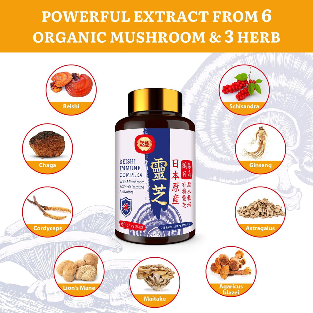 - Quality & Satisfaction Assured - Reishi mushroom complex supplement is made in Japan and verified by 3rd-party. We take pride in offering a mushroom extract capsules that is both effective and safe for our customers. Easy to swallow and no unpleasant taste of our 9 in 1 mushroom extract capsules is better than reishi mushroom powder. If you don't absolutely satisfied with ourmushroom extract capsules, Please feel free to contact with our customer service for solution.