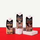Filtered Water, Jocko Protein Blend (Milk Protein Concentrate, Calcium Caseinate), MCT Oil, Alkali Cocoa, Natural Flavor, Monk Fruit Sweetener (Monk Fruit Extract), Reb M, Sunflower Lecithin, Potassium Citrate, Gellan Gum, Sodium Phosphate, Locust Bean Gum.