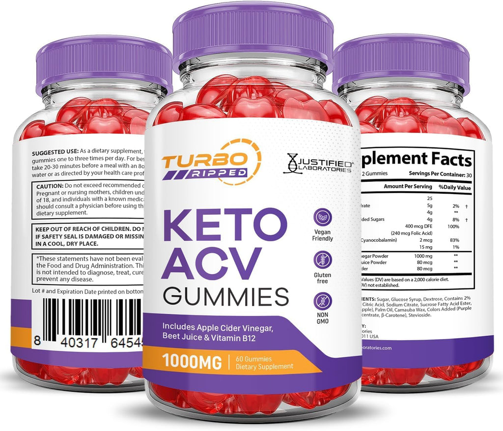 - Turbo Ripped Keto ACV Gummies: Your daily routine never tasted so good. Our delicious keto acv gummies include nutrients while tasting like a sweet treat. Each serving of Turbo Ripped Keto ACV Gummies contain 1000mg of apple cider vinegar