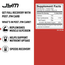 - More Muscle - Replenishing muscle energy stores as quickly and fully as possible after an intense workout is paramount to maximizing muscle recovery and thus muscle growth and strength. This is the sole purpose of Post JYM fast carbs.
