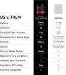 Organic Caffeine, L-Citrulline, Beta Alanine, Fermented BCAAs, Citric Acid, Natural Flavor, Tartaric Acid, Silicon Dioxide, Sodium Citrate, Steviol Glycosides, Sucralose, Spirulina Extract (Color), Calcium Silicate Contains: Tree Nuts (Coconut)