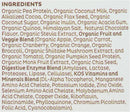 Organic Pea Protein, Organic Coconut Milk, Organic Alkalized Cocoa, Organic Flax Seed, Organic Coconut Sugar, Organic Inulin, Organic Acacia Gum, Organic Quinoa, Himalayan Salt, Natural Chocolate Flavor, Organic Stevia Extract, Organic Fruit And Veggie Blend (Organic Apple, Organic Carrot, Organic Cranberry, Organic Orange, Organic Broccoli, Organic Shiitake Mushroom Extract, And Organic Tomato), Organic Pumpkin Seed Protein, Organic Monk Fruit Extract, Organic Chia Seed, Digestive Enzyme Blend (Amylases, Lactase, Proteases, Lipase, Cellulase), Kos Vitamins And Minerals Blend (Dl-alpha Tocopherol, Manganese Amino Acid Chelate, Potassium Iodide, Zinc Oxide, Selenium Amino Acid Chelate, Molybdenum Amino Acid Chelate, Copper Oxide, Riboflavin, Niacinamide, Phylloquinone, Chromium Picolinate, Folic Acid, Cyanocobalamin).