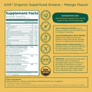 - Convenient delicious nutrition: No one has time to eat their daily greens and with KOS Superfood Greens you can sip a billion years of plant swagger. Succulent Mango flavor, add 1 scoop to cold water, mix, sip and enjoy.