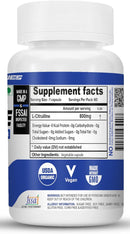 - 800mg of Pure L-Citrulline (USP grade) per Capsule.