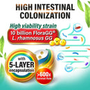 - THE MOST RESEARCHED & EFFECTIVE PROBIOTIC: 10 Billion FloraGG (Lactobacillus rhamnosus GG) and fortified with 7g Sunfiber. The most extensively studied and widely used probiotic strains. Resilient to Heat, Acid & Bile Resistant. It helps to enhance intestinal barrier, improves gastrointestinal condition, modulate host immune response and supports respiratory health.