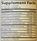 Vitamin C (as calcium ascorbate), vitamin K1 (as phylloquinone), zinc (as fully-reacted chelate), copper (as fully-reacted chelate), manganese (as managanese glycinate), chondroitin sulfate (from bovine), Boswellin PA, horsetail extract (stem), bromelain (from pineapple 300 GDU), boron (as fully-reacted chelate), gelatin capsule (kosher), vegetable stearic acid (from palm oil). Non-GMO.