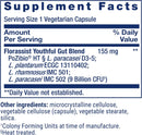Florassist Youthful Gut Blend 155 mg PoZibio® HT § L. paracasei D3-5; L. plantarum ECGC 13110402; L. rhamnosus IMC 501; L. paracasei IMC 502 (9 Billion CFU† ) Other ingredients: microcrystalline cellulose, vegetable cellulose (capsule), vegetable stearate, silica.