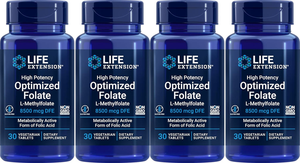 - Life Extension High Potency Optimized Folate 8500 mcg DFE, 30 Vegetarian Tablets (Pack of 4)