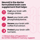 - One Unique Blend - Achieving a change in health requires the right ingredients in the right doses. This used to require purchasing many individual vitamins and nutrients to create an effective blend. NeuroQ was doctor formulated to put that blend into one bottle.