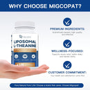 - Advanced Relaxation and General Wellness Support: Migcopat Liposomal L-Theanine combines 800 mg of Liposomal L-Theanine with 150 mg GABA, 210 mg Magnesium, 100 mg Ashwagandha, and 25 mg Phosphatidylserine to help promote a sense of relaxation, calmness, and overall well-being. Ideal for those looking to support daily wellness and maintain a balanced lifestyle.