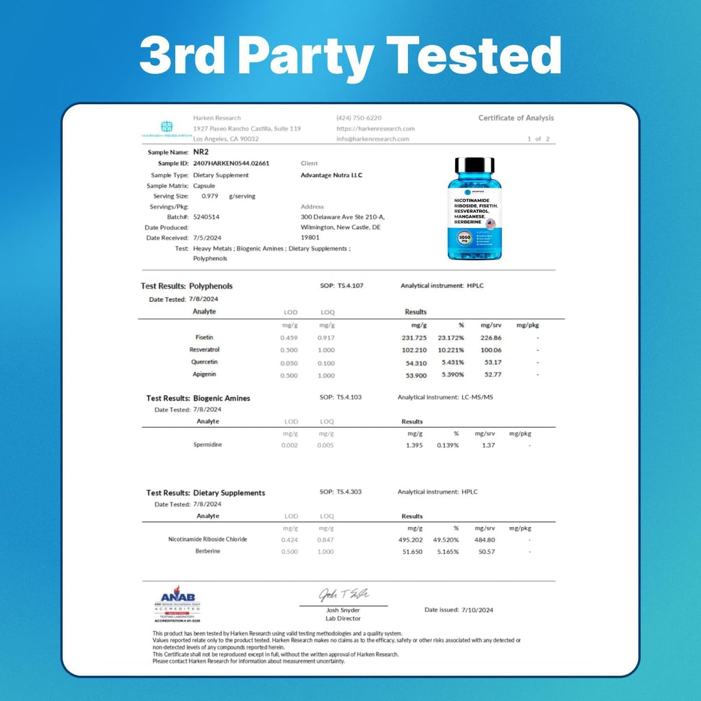 Nicotinamide Riboside NR. Nad Resveratrol. Berberine. Fisetin & Quercetin. Apigenin & Manganese