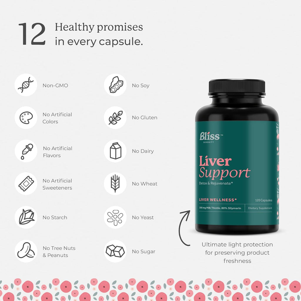 Bliss Serenity Liver Cleanse Detox & Repair - Liver Detox with Milk Thistle Supplement - Liver Formula with Artichoke Extract, Dandelion Root & More for Optimal Liver Support