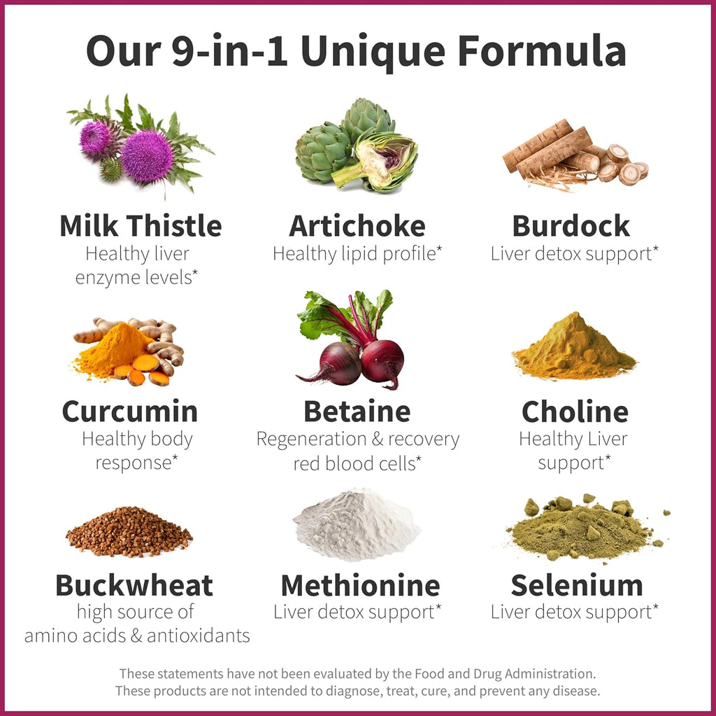 - ✅ PERFECTLY BLENDED with 10 SUPERIOR QUALITY ALL NATURAL INGREDIENTS - Power-packed with Milk Thistle, Burdock, Buckwheat, Betaine, Artichoke, Curcumin, Methionine, L-Argini, Chlonine, and Selenium.
