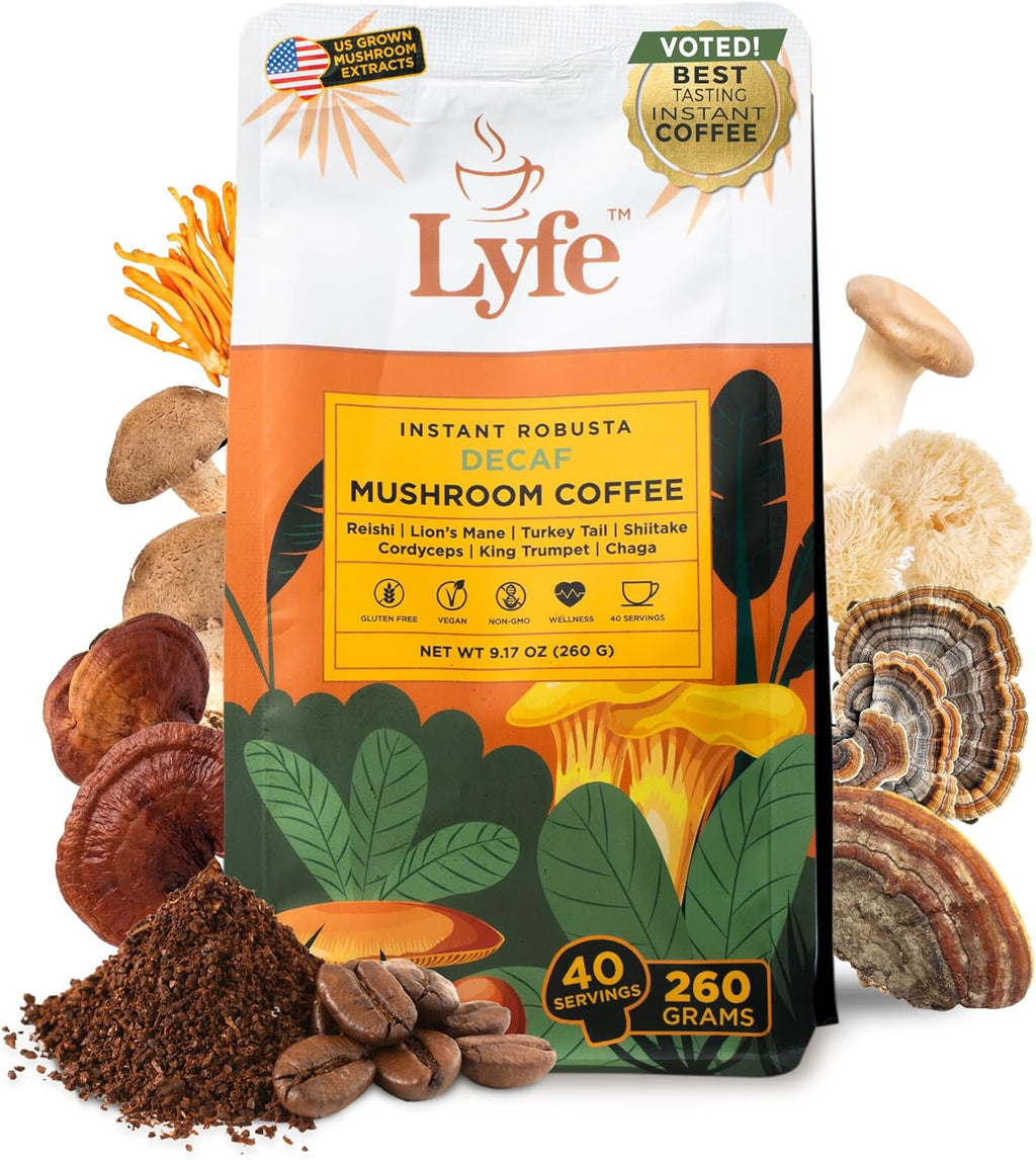 - LION’S MANE COFFEE FOR BRAIN HEALTH - Featuring Lion’s Mane, this coffee supports cognitive function, clarity, and focus, helping you stay sharp and energized throughout the day with a smooth, decaffeinated boost.