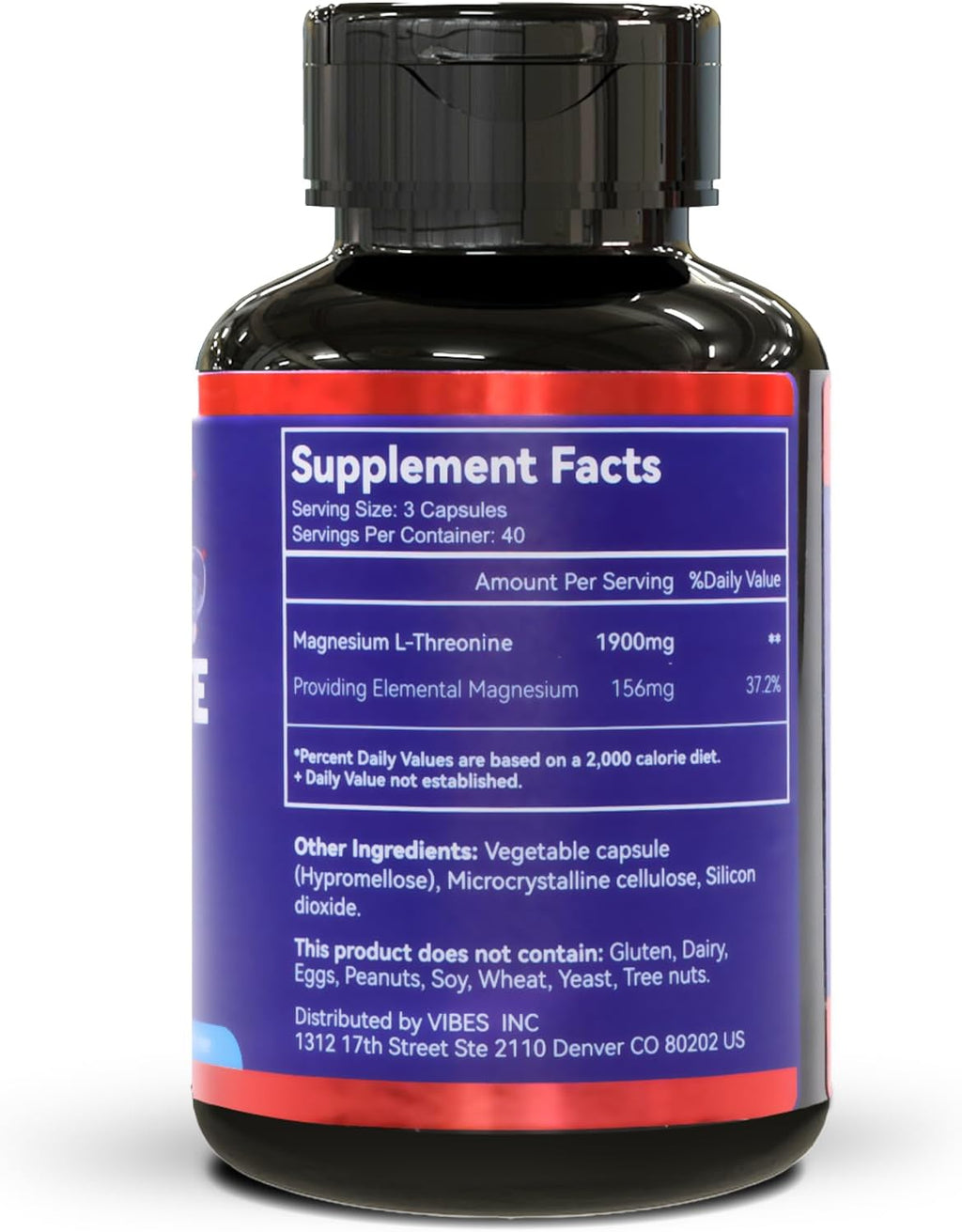 - Ideal Daily Intake - Consume 3 daily capsules, delivering 1900mg of Magnesium L-Threonine. Each bottle has 120 capsules, enough to accompany you through 40 days of wellness, with superior absorption so your body can get what it needs.