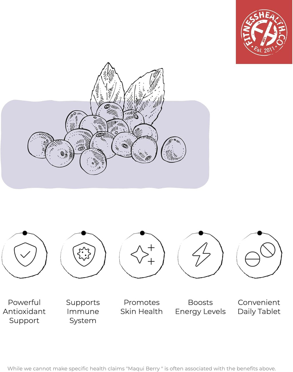 - ACTIVE INGREDIENTS: Fitness Health concentrated maqui berry tablets contain vital ingredients 40mg of Maqui Berry Extract (25:1 Concentrated extract equivalent to 1000mg raw herb), with 25% anthocyanins. Magnesium Stearate Microcrystalline Cellulose with no added preservatives or harmful ingredients.