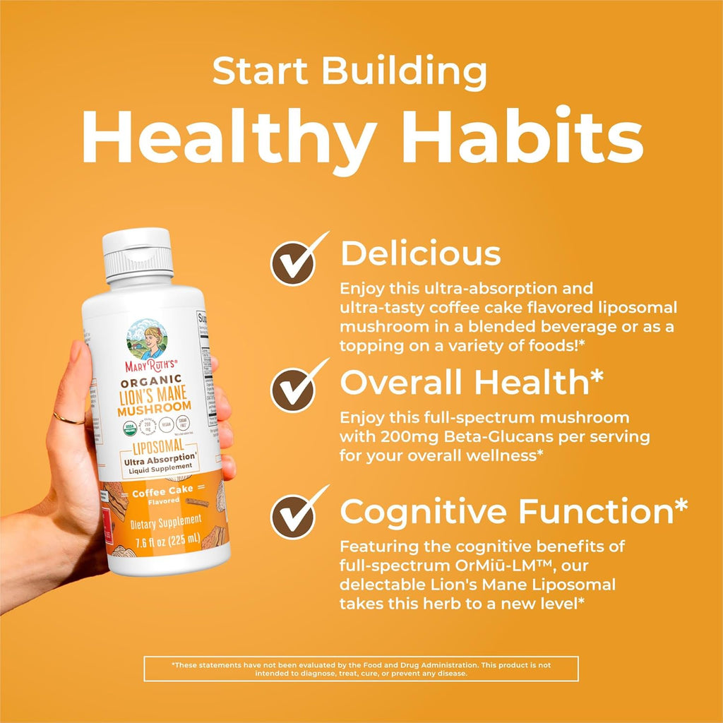 • A Formula You Can Trust: MaryRuth's Lion's Mane Liposomal (Coffee Cake) & Reishi Mushroom Liposomal (Candied Pecan) are Clean Label Project Verified | Lion's Mane: These zero-waste mushrooms benefit you and the planet! Our Lion's Mane Liposomal with OrMiū-LM supports cognitive health with enhanced benefits. | Reishi Supplement: This full-spectrum mushroom (primordia, mycelium, and fruiting bodies) offers immune support with 1g (200mg Beta-Glucans) per serving, grown with zero waste.