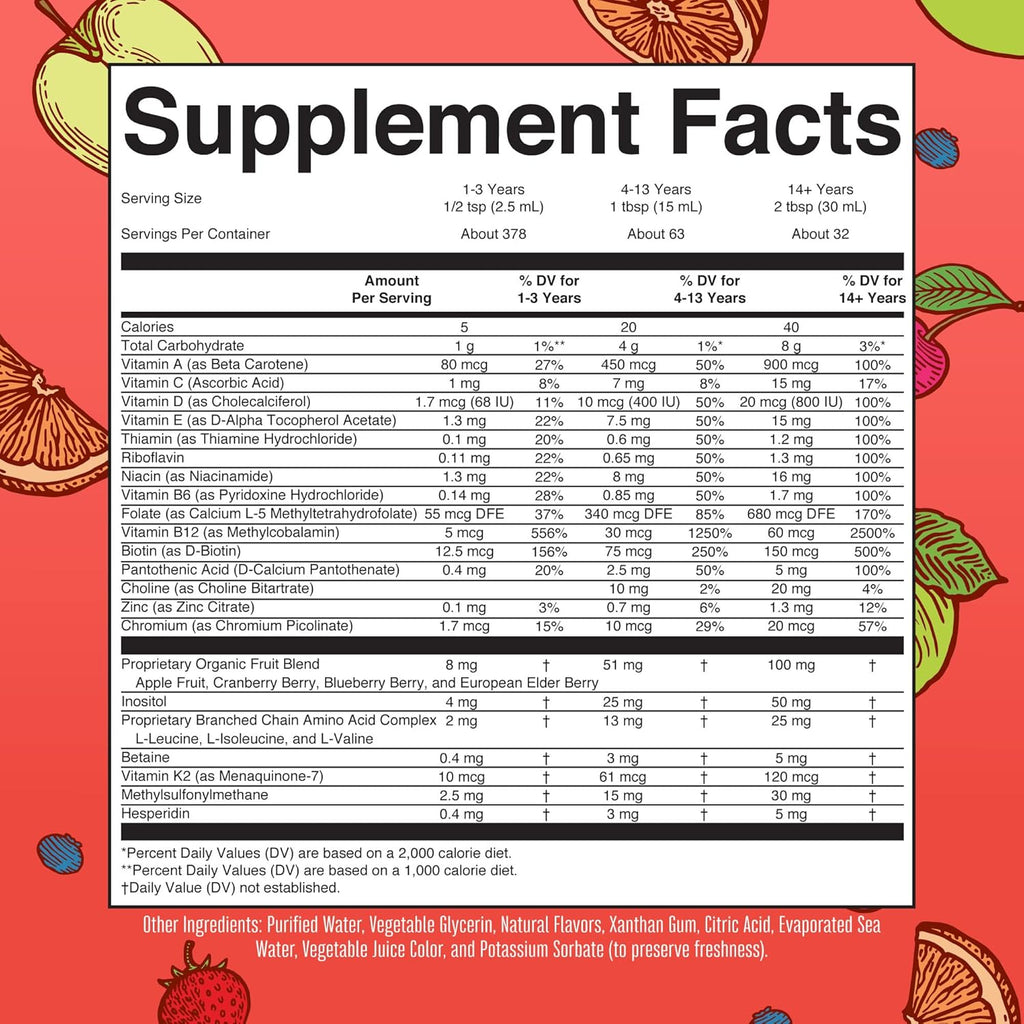 • Liquid Morning Multivitamin Essentials+: A different take on our original Mary Ruth Liquid Morning Multivitamin formula in two delicious flavors! With essential vitamins (including vitamin K2 as MK-7!), minerals, and elderberry. This liquid multivitamin is available in Fruit Punch or Strawberry!