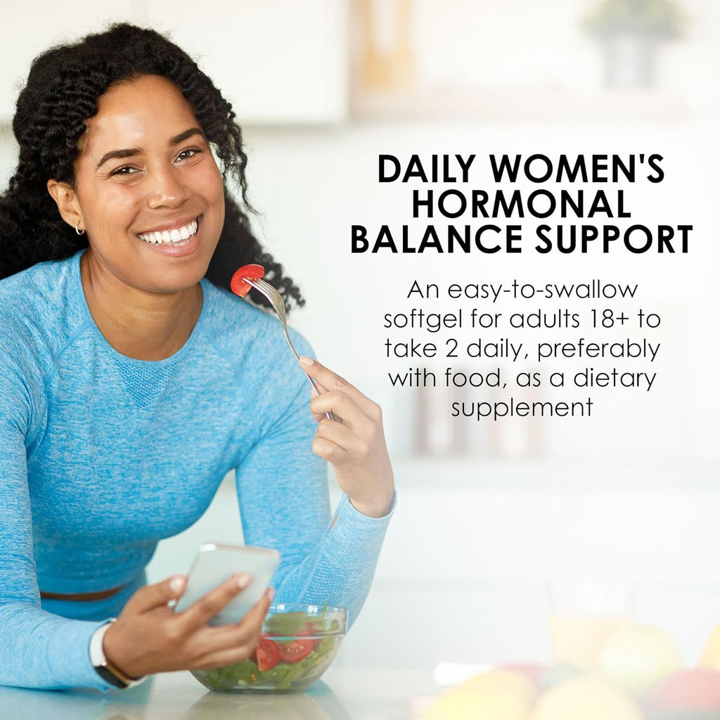 - DAILY WOMEN'S HORMONAL BALANCE SUPPORT: An easy-to-swallow softgel for adults 18+ to take 2 daily, preferably with food, as a diety supplement