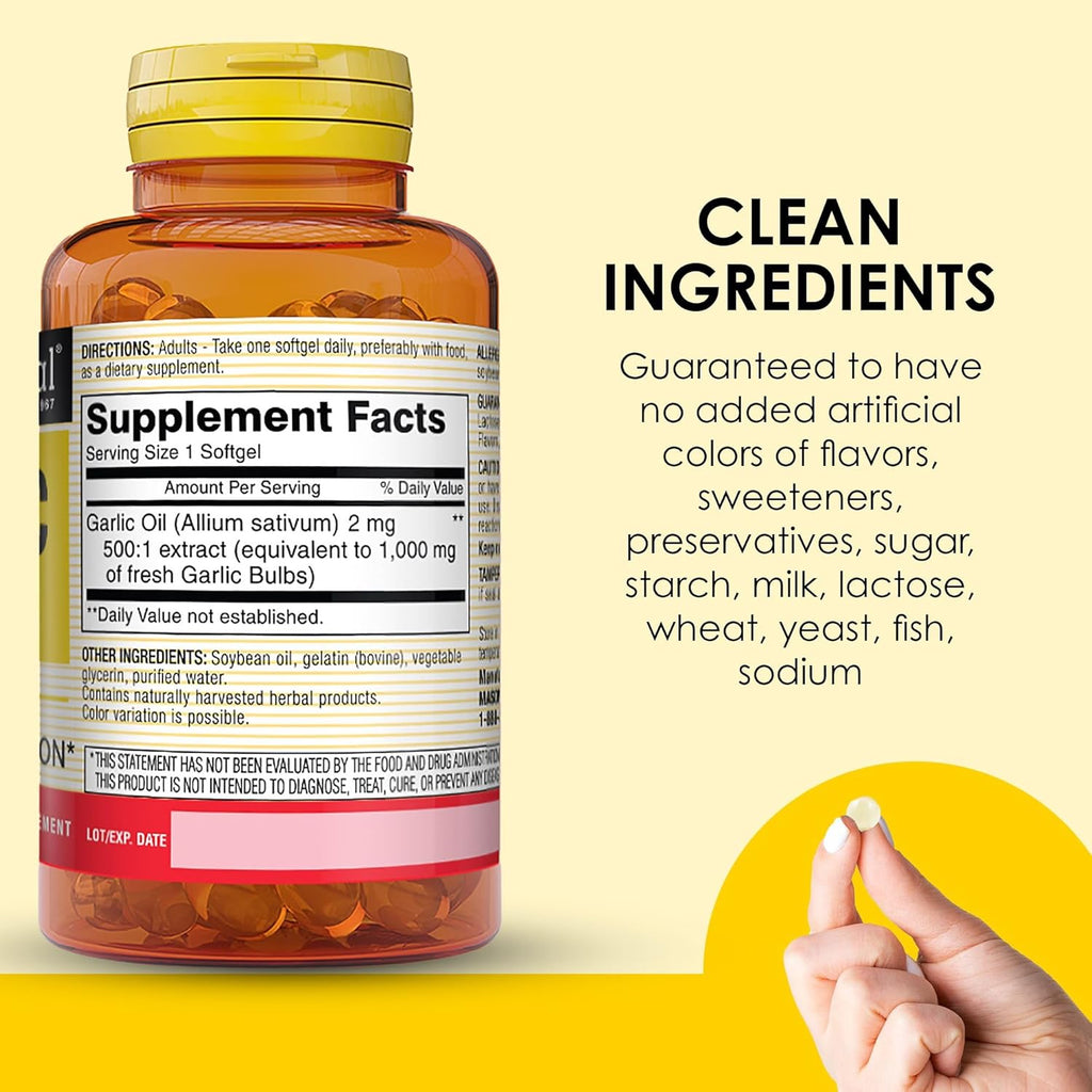 - GARLIC: 1000 mg softgels contain a concentrated extract of allium sativum, the active compound in garlic