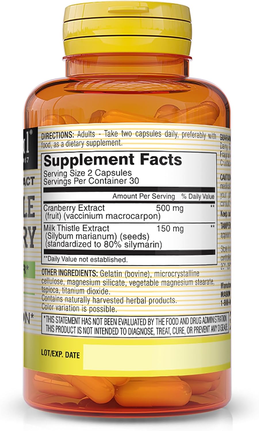 Cranberry Extract (fruit) (vaccinium macrocarpon) 500 mg Milk Thistle Extract (Silybum marianum) (seeds) (standardized to 80% silymarin) 150 mg