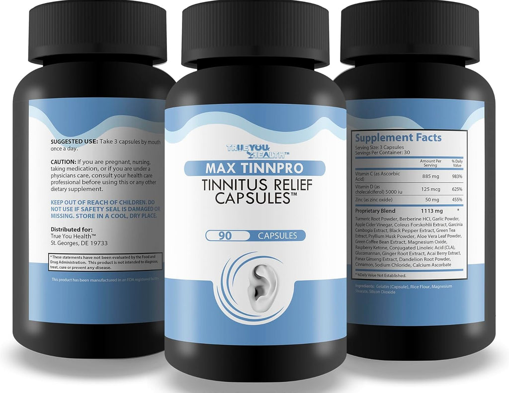 Discover a natural supplement designed for your auditory discomfort. Max Tinnpro Tinnitus Relief Capsules are expertly formulated to offer comprehensive ear and hearing support, specifically targeting the symptoms of tinnitus. If you've been searching for an herbal tinnitus treatment or a natural ear ringing remedy, look no further. Our ear ringing relief pills are designed to help clear tinnitus ear ringing, promoting healthy auditory function. Tinnitus can be a persistent and frustrating condition, characterized by a constant or intermittent ringing ears. Max Tinnpro Tinnitus Relief Capsules's advanced formula contains ingredients to help soothe your auditory system. Each capsule is packed with nutrients to support healthy hearing, making these ear ringing pills an essential addition to your daily health regimen. Tinnitus Relief Capsules take a holistic approach to ringing ears treatment, supporting relief from the constant disturbance of ringing in the ears. The powerful blend of vitamins, minerals, herbs, and antioxidants help nourish the auditory pathways, promoting overall ear health and reducing the discomfort of tinnitus. Whether you're new to seeking tinnitus treatment or have tried other remedies without success, our product provides a trusted alternative for ear ringing relief. Unlike med for ringing in ears or ear ringing drops, our capsules require no prep work or messy clean up. Our ear ringing pills are easy to incorporate into your routine and provide consistent support for those looking to help stop ringing in the ears. Take the first step towards clear, peaceful hearing today and don't let ringing in my ears control your life. Choose Tinnitus Relief Capsules to provide the comprehensive ear and hearing support. With our unique formula, you can support a healthy auditory experience. Order your bottle today!