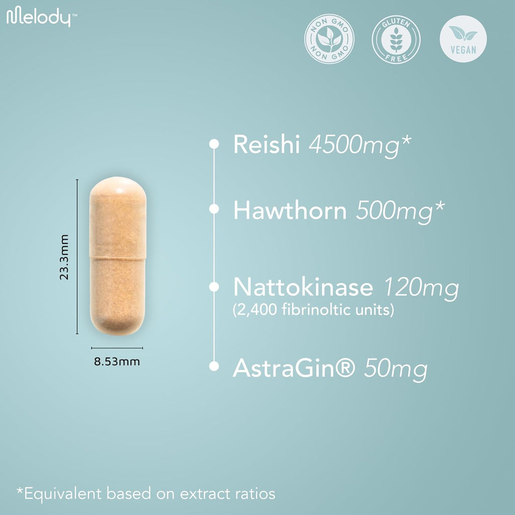 - Natural Ingredients - Our innovative formulation of Reishi, Nattokinase, Hawthorn Berry, and AstraGin are designed to work synergistically together to offer the most comprehensive and effective approach to maintaining a healthy heart.