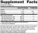 Marine Lipid Concentrate 2.5g, EPA (Eicosapentaenoic acid triglyceride) 860 mg, DHA (Docosahexaenoic acid triglyceride) 580 mg, Other Omega-3 Fatty Acid Triglycerides 160 mg. Ingredients: Marine lipid concentrate [fish (anchovy, sardine, and mackerel) oil], softgel shell (gelatin, glycerin, water), contains 2 percent or less of natural lemon, flavor, mixed tocopherols (antioxidant), rosemary extract, and ascorbyl palmitate, (antioxidant). Contains: Fish (anchovy, sardine, and mackerel).