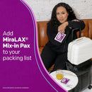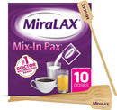 MiraLAX is a polyethylene glycol (PEG 3350) laxative powder made for providing gentle constipation relief. Unlike some laxatives which stimulate the nerves, MiraLAX is a non stimulant osmotic laxative, working naturally with the water in your body to hydrate, soften, and ease stool through the colon gently. Since going on the market as an OTC laxative in 2007, MiraLAX has been the #1 Physician Recommended OTC brand of laxative. It provides constipation relief without causing harsh side effects like cramping, bloating, sudden urgency, and gas. MiraLAX is a gentle laxative designed to treat occasional constipation. MiraLAX Mix-In Pax are made for easy, convenient mixing and are unflavored with no added taste or grit. To use, pour one packet of powder (17g) into a 4 to 8 ounces hot or cold beverage and mix until the powder is fully dissolved, then drink. Beverages include but are not limited to: coffee, tea, juice, milk and more. MiraLAX generally produces a bowel movement in 1-3 days.