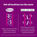 - UNBLOCK YOUR SYSTEM: An osmotic laxative, MiraLAX works naturally with the water in your body to hydrate, soften, and ease stool through your colon in 1-3 days, whereas stimulant laxatives stimulate the nerves to move stool through the colon immediately