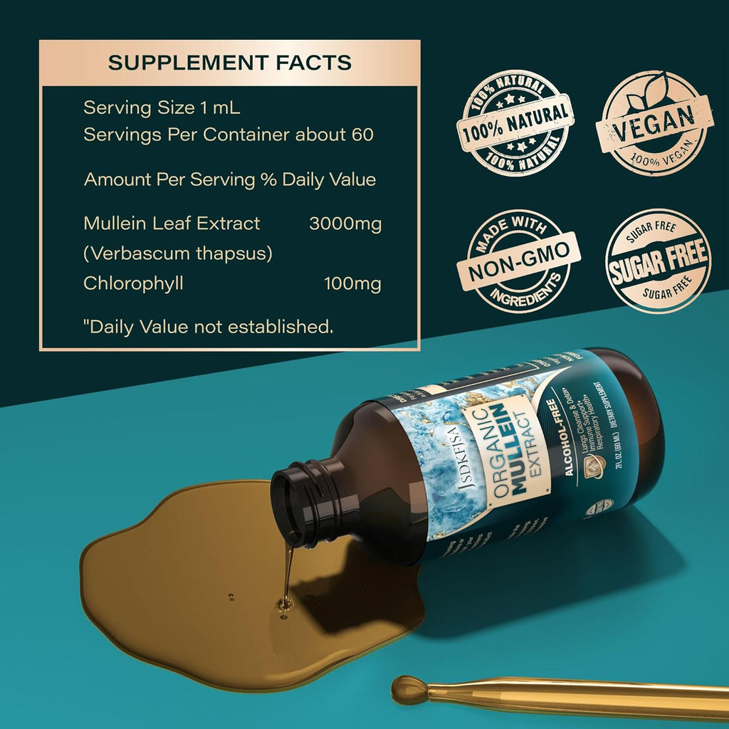 - JSDKFJSA's organic Mullein leaf and flower extract offers a natural alternative to Echinacea. This alcohol-free tincture is ideal for cleansing the lungs effectively. A must-have for smokers and health-conscious individuals, simply mix with water to promote healthy breathing.