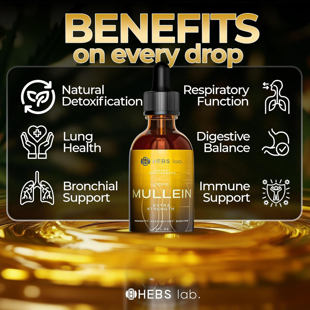 - Start Breathing Easier - Mullein Leaf Extract will help you with lung detox. Clear lungs are not an easy task, but it is very important to support lug cleanse.