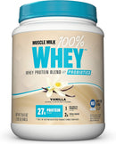 - Muscle Milk 100% Whey With Probiotics Protein Powder, Vanilla, 1.85 Pound, 23 Servings, 27g Protein, 2g Sugar, 1B CFU Probiotics, Low in Fat, NSF Certified for Sport, Energizing Snack, Workout Recovery, Packaging May Vary