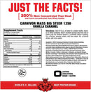 CARNIVOR MASS BIG STEER 1250 is a scientifically-developed highly anabolic mass gainer. It’s exclusive combination of clinically tested Carnivor hydrolyzed beef protein isolate, 255G of fast acting, reactive enhanced carbohydrates, insulin optimizers and whopping 1250 calories create the ideal mass building environment for serious gains!