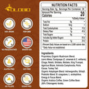 Lion's Mane Extract, Cordyceps (C. sinensis & C. militaris) Extract, Chaga Extract, Reishi Extract, Shiitake Extract, Maitake Extract, King Trumpet Extract, Agaricus Blazei Extract, Antrodia Camphorata Extract, Poria Cocos Extract, Turkog ey Tail Extract. Ashwagandha, Shilajit. B.coagulans, L. acidophilus. Organic Arabica Coffee Powder, Green Coffee Bean Extract (50% Chlorogenic Acids).
