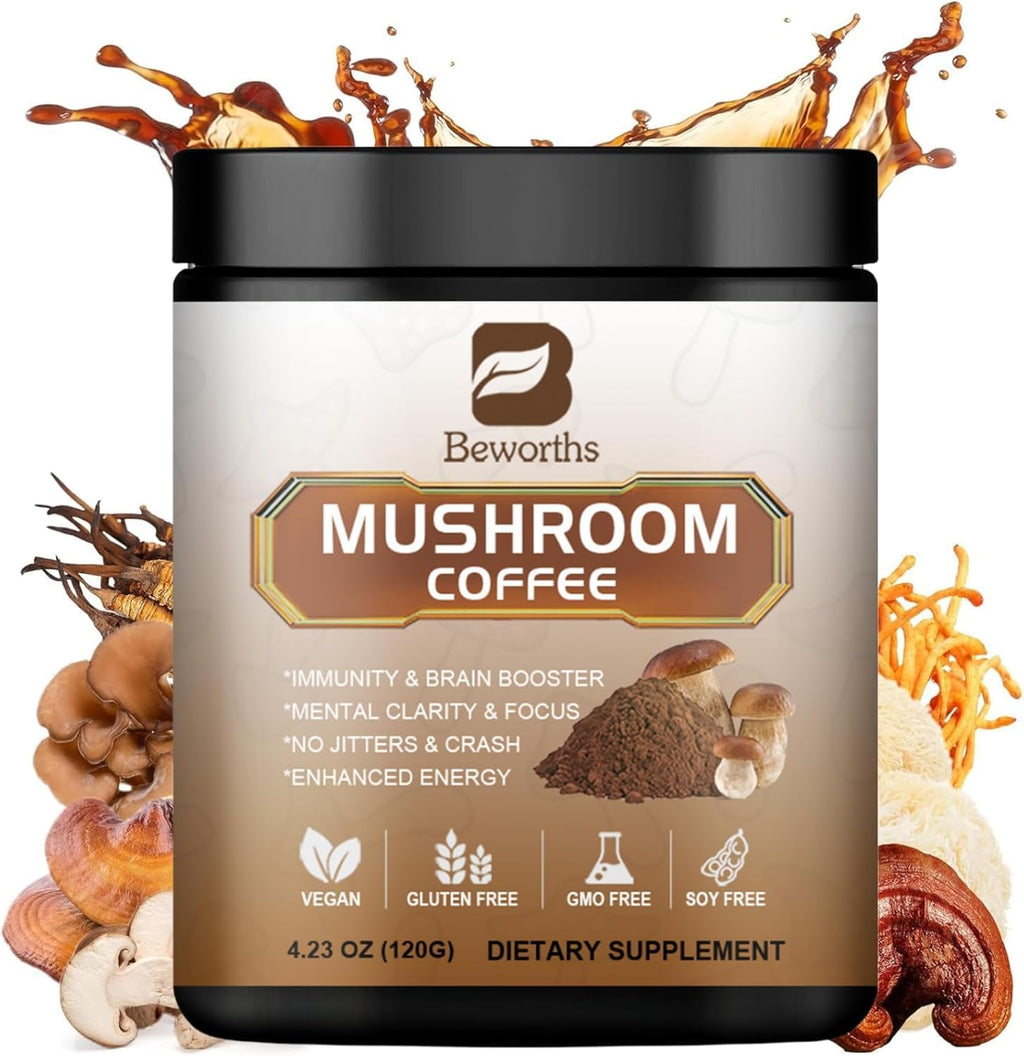 10 in 1 Mushroom Coffee Powder, Organic Mushroom Coffee with Lion's Mane, Chaga, Reishi, Cordyceps, and Maitake
