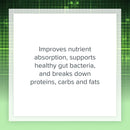 - Helps you more easily break down proteins, carbs and fats;* It also encourages healthy gut bacteria and eases digestive discomfort*