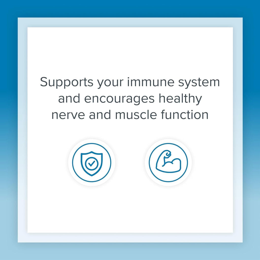 - Supports strong bones and teeth, helps regulate the immune system and encourages healthy nerve and muscle function